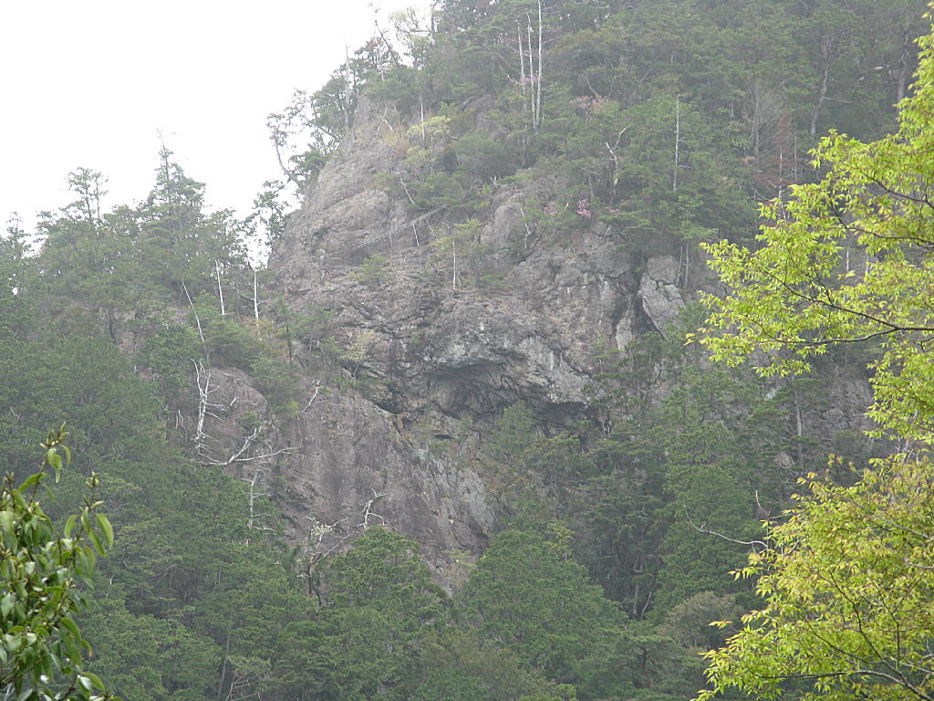 崖に何かが作ってある、、
