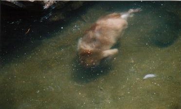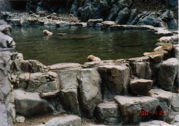 露天につかっている猿です。 猿って温泉でもぐるんですね。