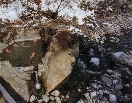 蒲田川の川端に作られた露天風呂。あまりに有名。混浴。女性は水着を着けてね。