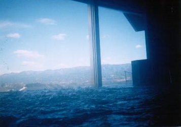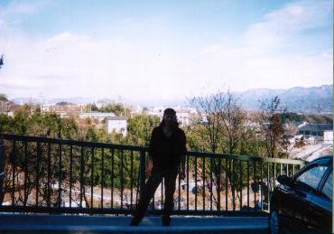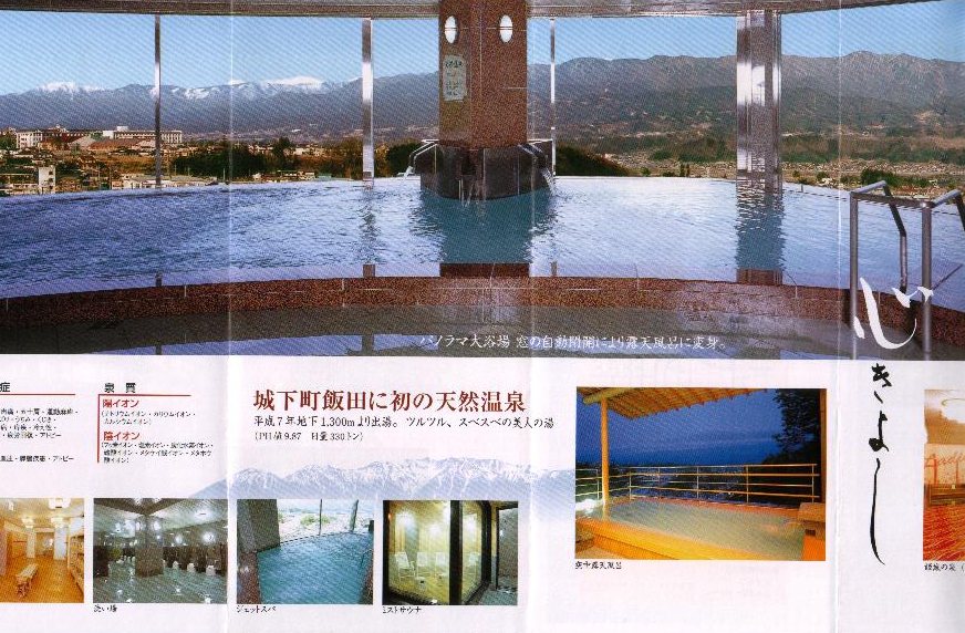 左は気泡ぶろから見た景色です。すてきですよ。 右は私です。バックは南アルプス!!